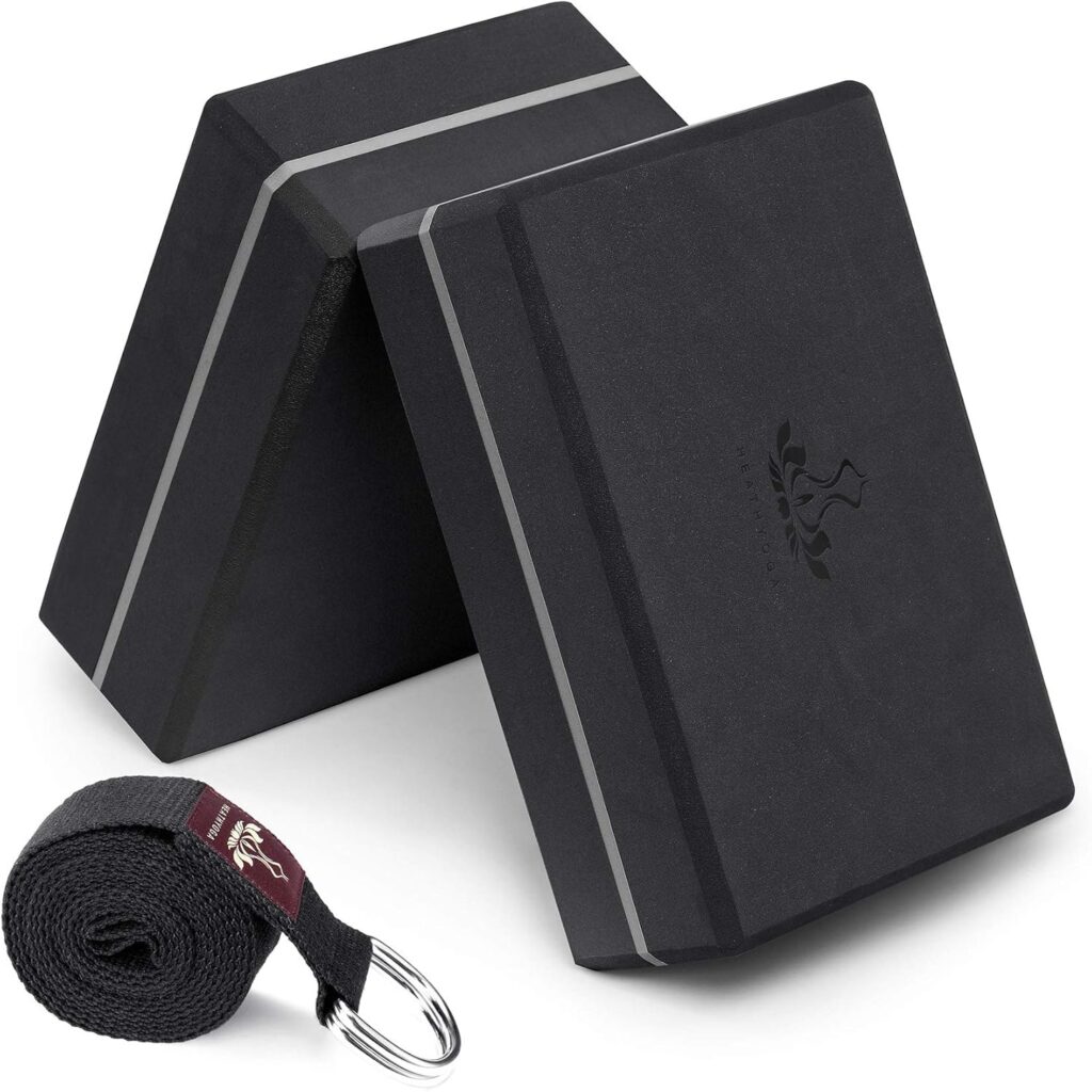2) Heathyoga Yoga Blocks 2 Pack + Strap Set
