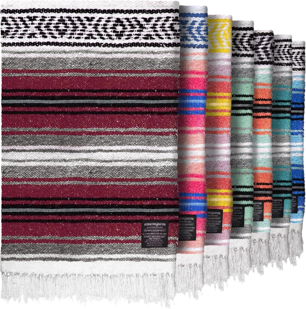 On Amazon, you’ll find a range of styles—from dense wool-blend blankets that feel stable and warm, to classic Mexican (falsa/serape-style) blankets that stack neatly and wash easily. Materials matter: wool brings warmth and firm support; cotton and recycled blends prioritize breathability, easy care, and portability. Size, thickness, and weave determine how well a blanket folds, how much lift you get, and how it handles sweat or studio chill. Durability and edge finishing also affect longevity, especially if you’re folding and unfolding multiple times a week.